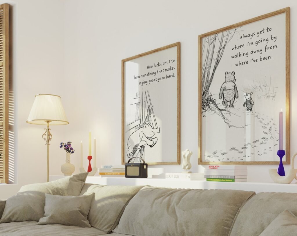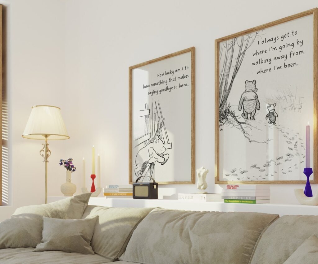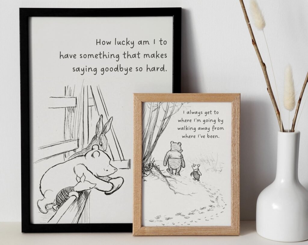 Our Winnie the Pooh Quote Prints, Black and White Pooh, set of 2, soothing colors, and heartwarming quotes that are bound to bring joy and comfort to your baby’s room. Each print is thoughtfully crafted to add a touch of magic and wonder, making it an ideal gift for new parents or a special treat for your own bundle of joy.