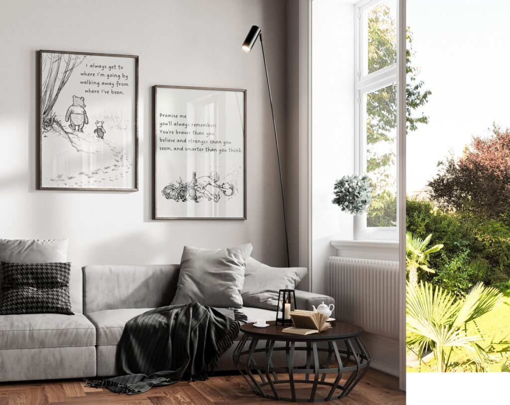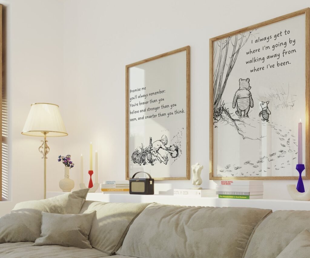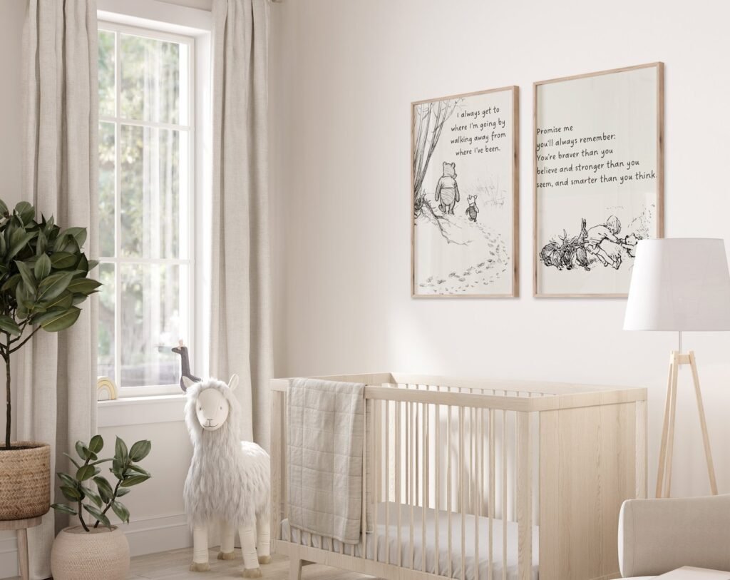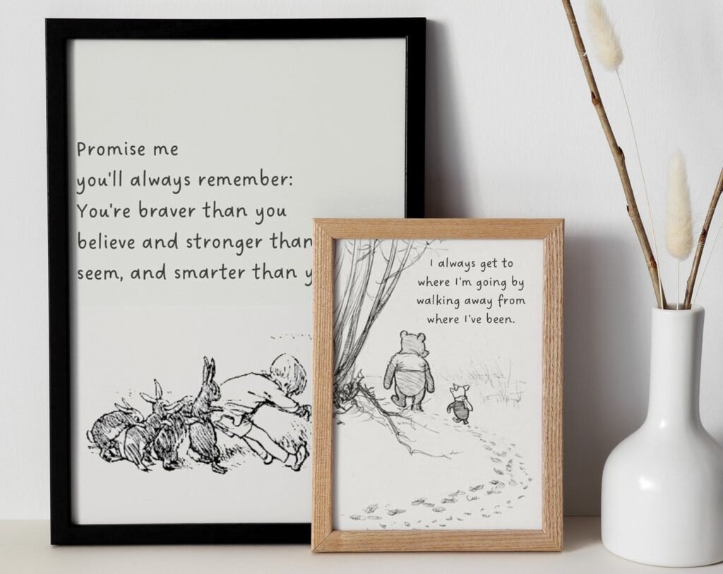Our Winnie the Pooh Quote Prints, Black and White Pooh, set of 2, soothing colors, and heartwarming quotes that are bound to bring joy and comfort to your baby’s room. Each print is thoughtfully crafted to add a touch of magic and wonder, making it an ideal gift for new parents or a special treat for your own bundle of joy.