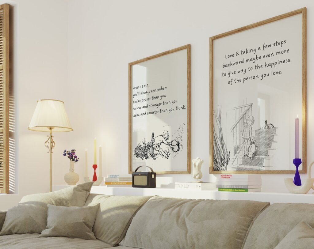Our Winnie the Pooh Quote Prints, Black and White Pooh, set of 2, soothing colors, and heartwarming quotes that are bound to bring joy and comfort to your baby’s room. Each print is thoughtfully crafted to add a touch of magic and wonder, making it an ideal gift for new parents or a special treat for your own bundle of joy.