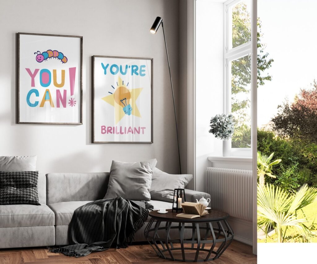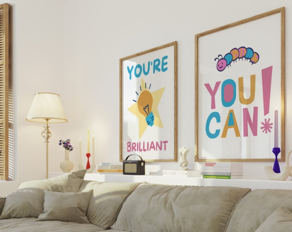 Our You Can, kids Positive Affirmations, set of 2, soothing colors, and heartwarming quotes that are bound to bring joy and comfort to your baby’s room. Each print is thoughtfully crafted to add a touch of magic and wonder, making it an ideal gift for new parents or a special treat for your own bundle of joy.
