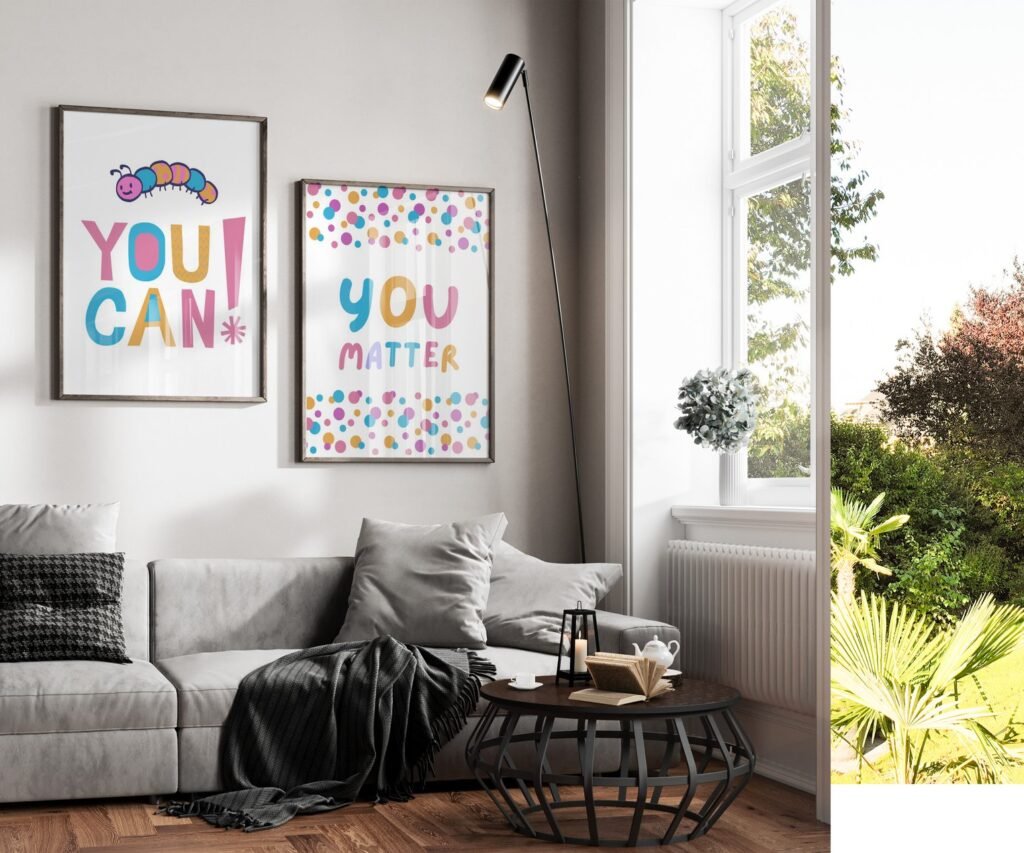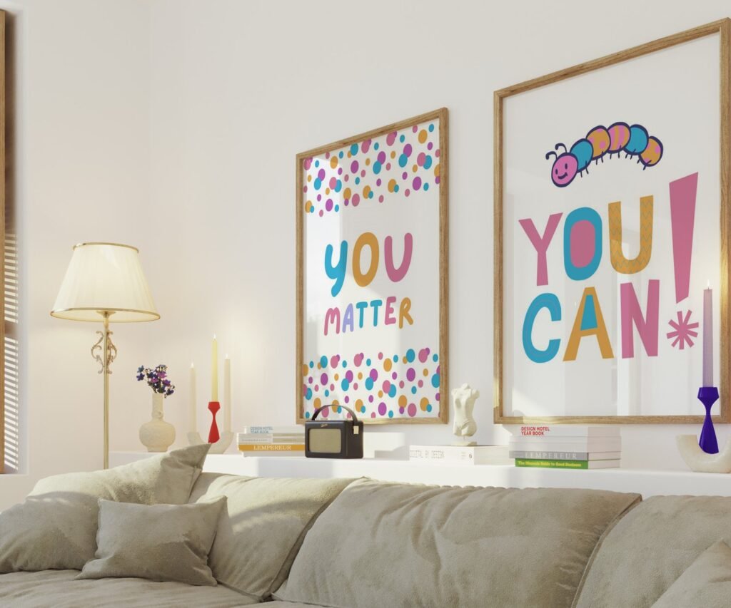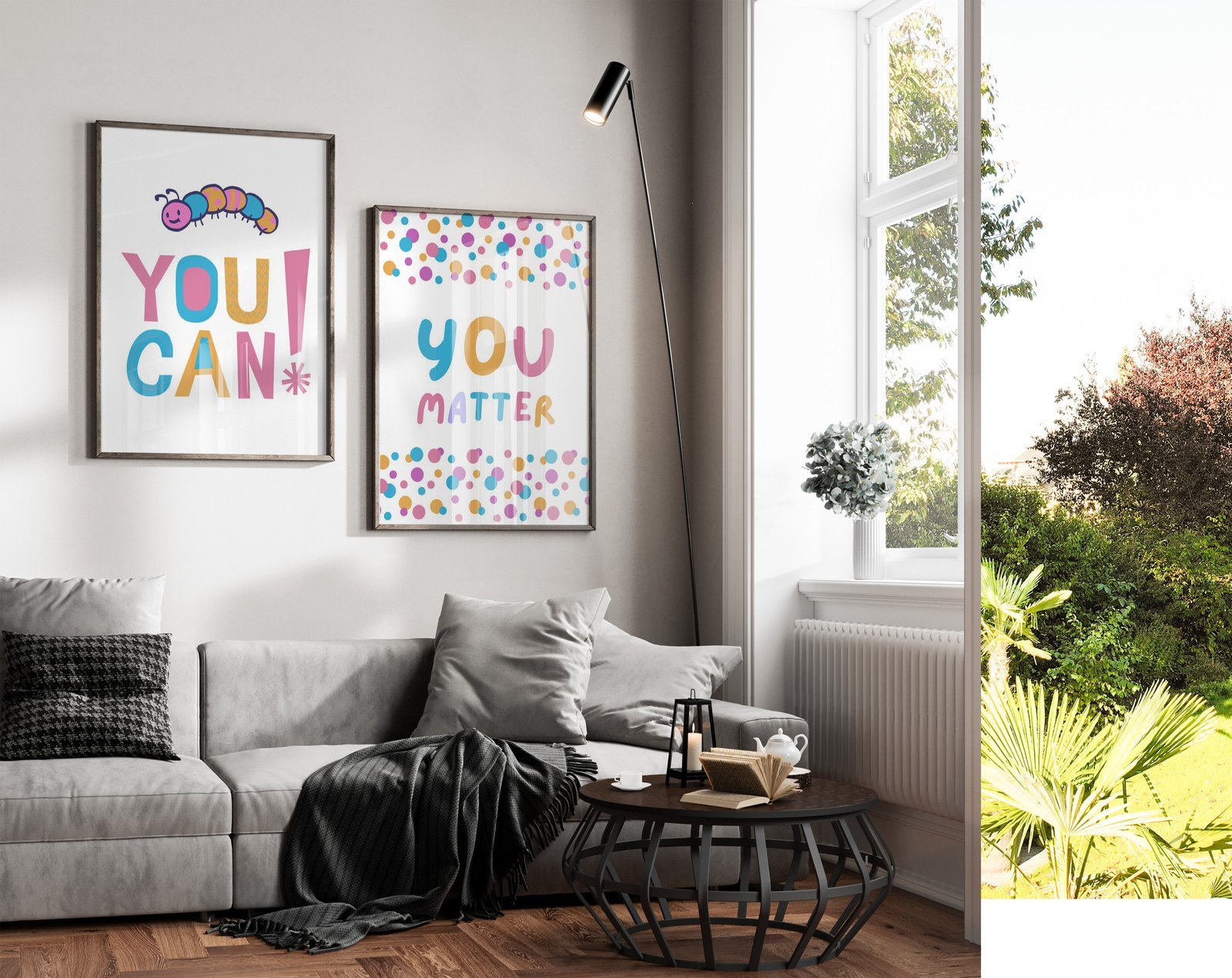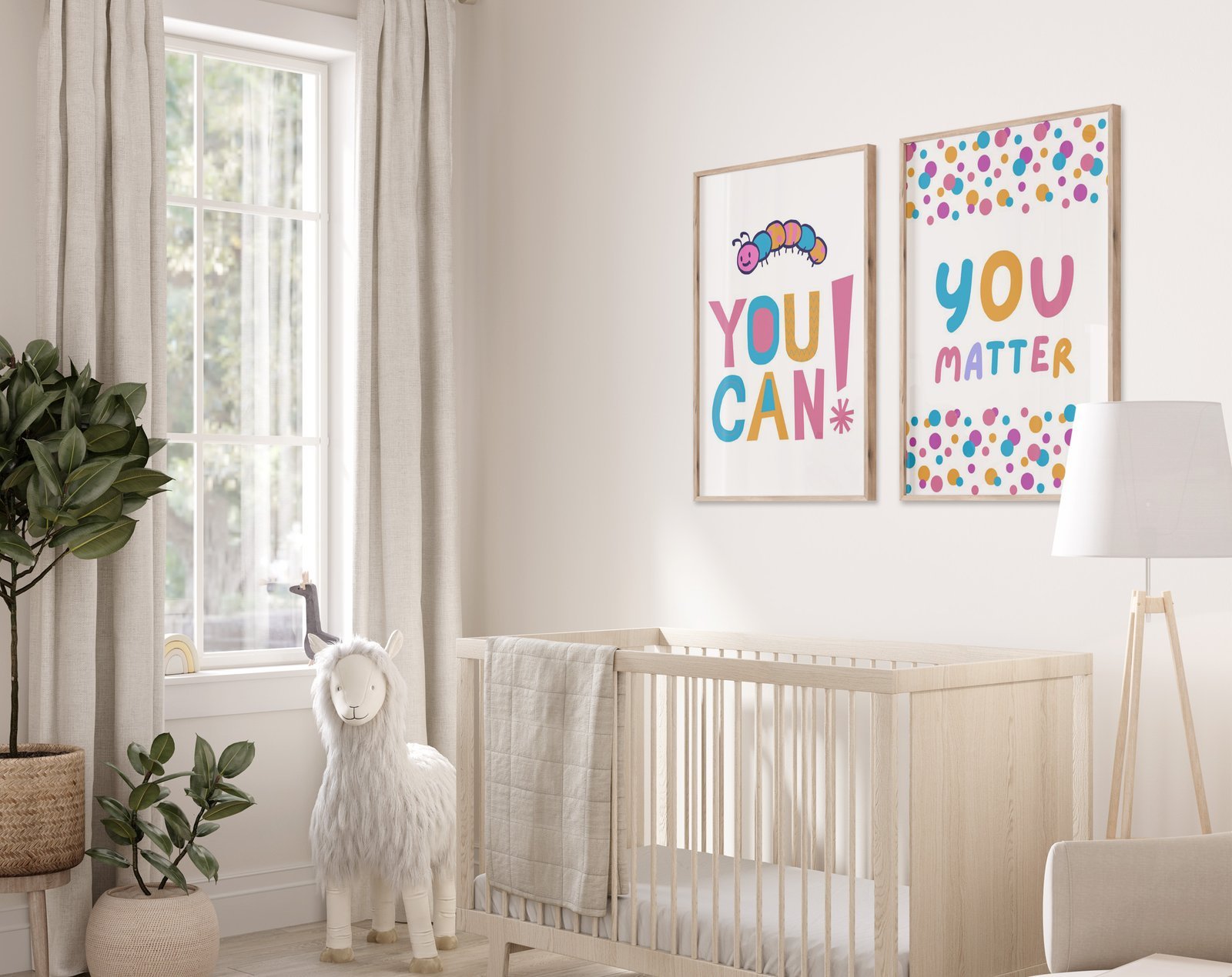 Our You Can, kids Positive Affirmations, set of 2, soothing colors, and heartwarming quotes that are bound to bring joy and comfort to your baby’s room. Each print is thoughtfully crafted to add a touch of magic and wonder, making it an ideal gift for new parents or a special treat for your own bundle of joy.