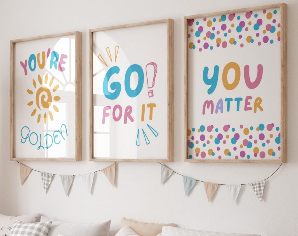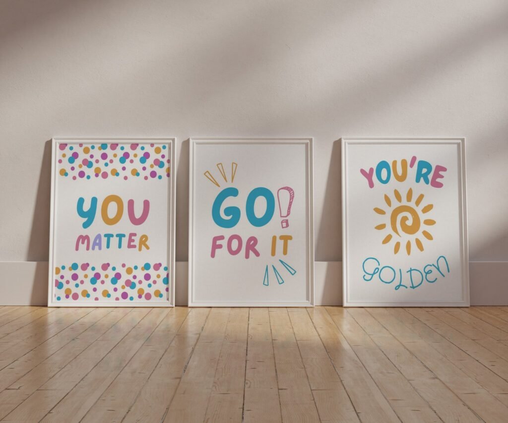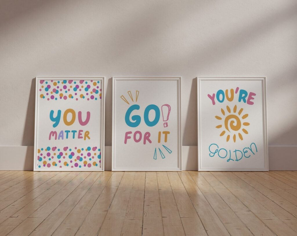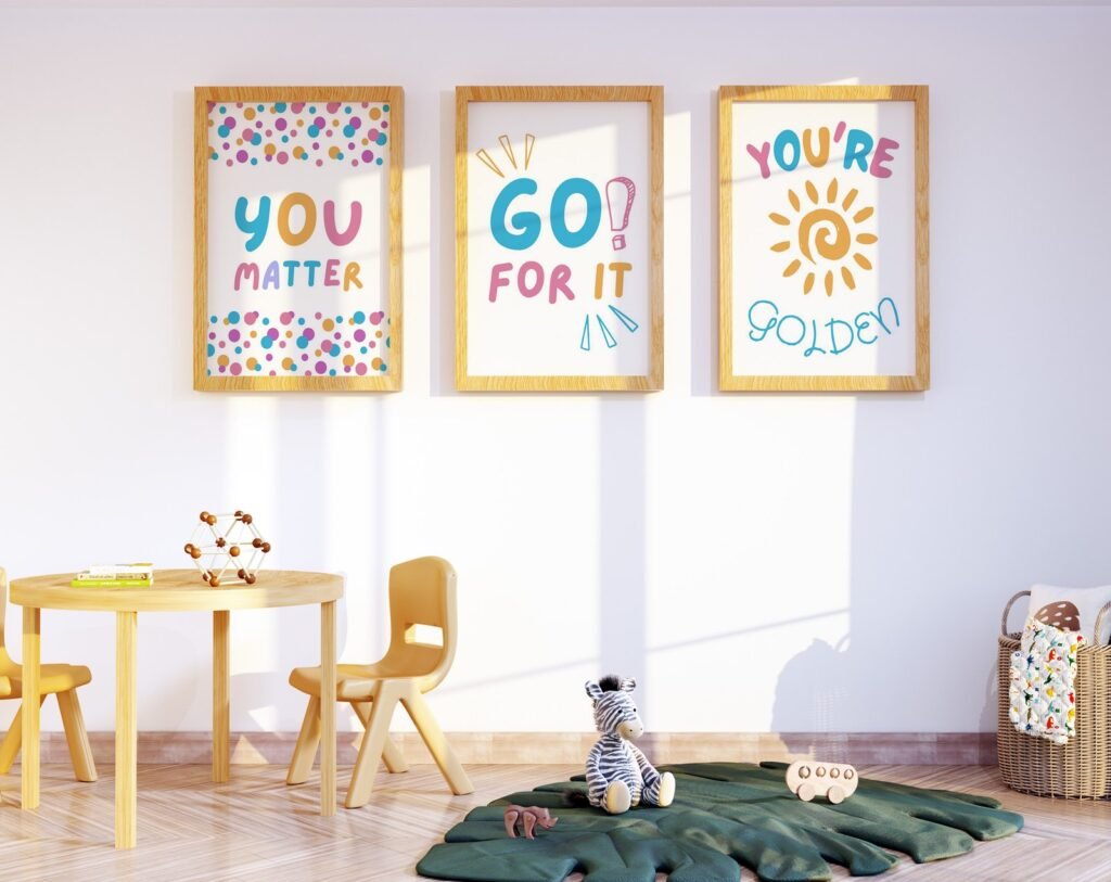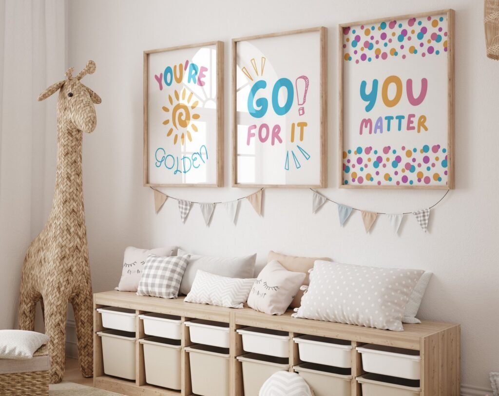 Our You Can, kids Positive Affirmations, set of 3, soothing colors, and heartwarming quotes that are bound to bring joy and comfort to your baby’s room. Each print is thoughtfully crafted to add a touch of magic and wonder, making it an ideal gift for new parents or a special treat for your own bundle of joy.