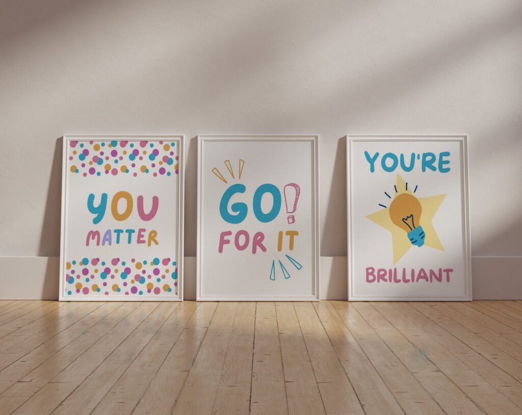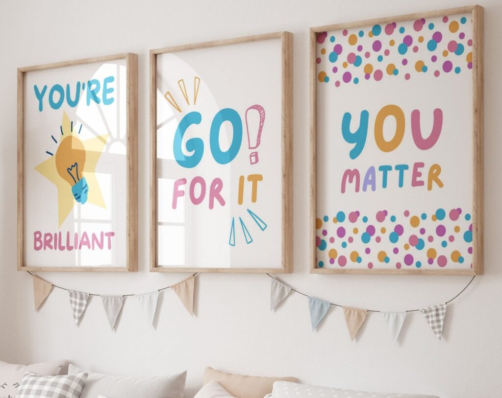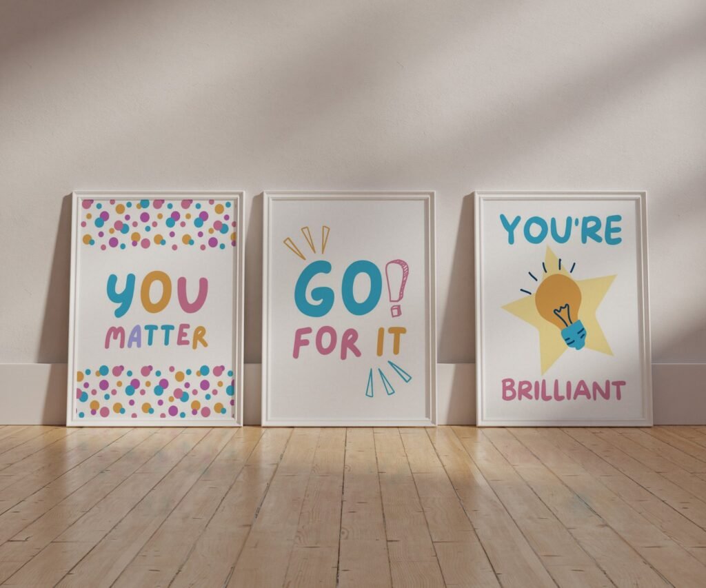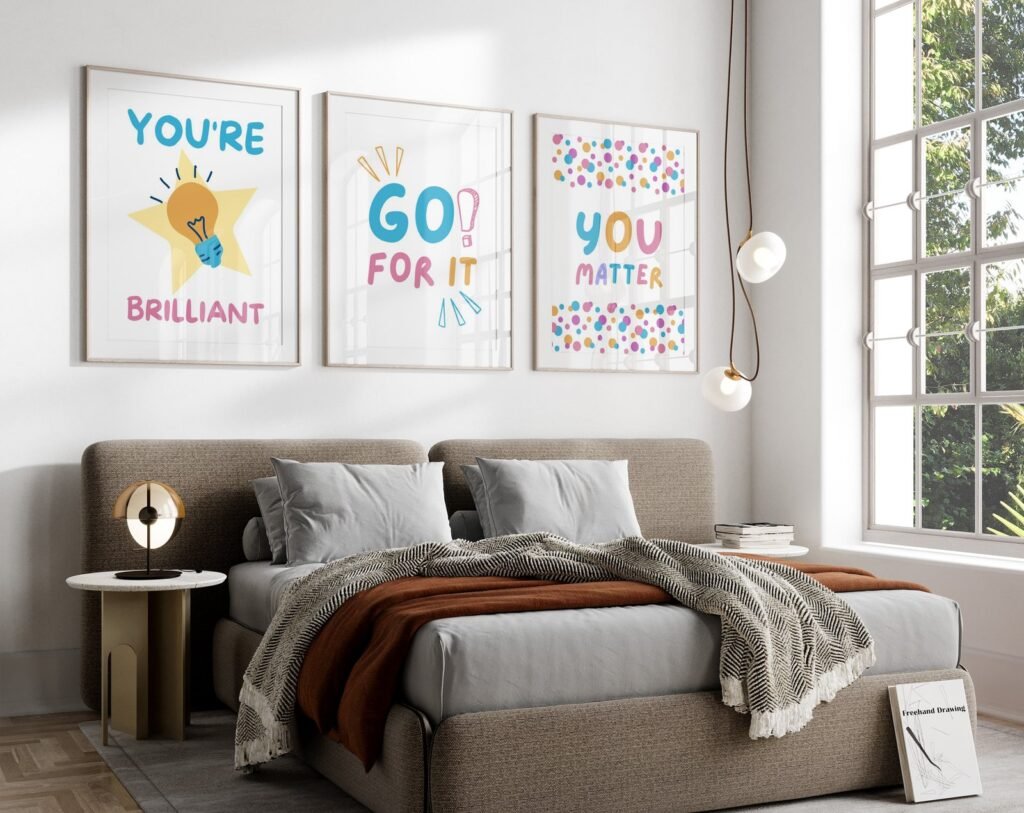 Our You Can, kids Positive Affirmations, set of 3, soothing colors, and heartwarming quotes that are bound to bring joy and comfort to your baby’s room. Each print is thoughtfully crafted to add a touch of magic and wonder, making it an ideal gift for new parents or a special treat for your own bundle of joy.