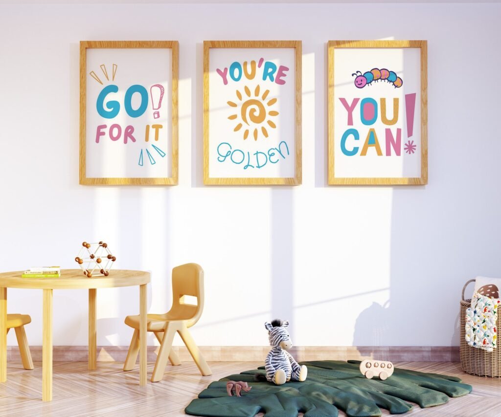 Our You Can, kids Positive Affirmations, set of 3, soothing colors, and heartwarming quotes that are bound to bring joy and comfort to your baby’s room. Each print is thoughtfully crafted to add a touch of magic and wonder, making it an ideal gift for new parents or a special treat for your own bundle of joy.