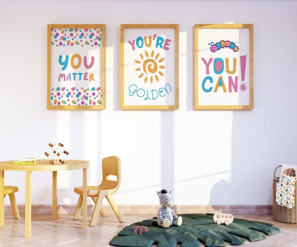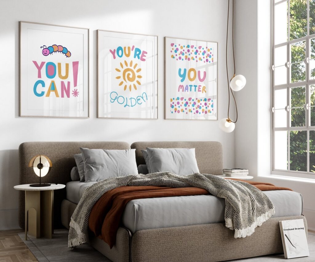 Our You Can, kids Positive Affirmations, set of 3, soothing colors, and heartwarming quotes that are bound to bring joy and comfort to your baby’s room. Each print is thoughtfully crafted to add a touch of magic and wonder, making it an ideal gift for new parents or a special treat for your own bundle of joy.