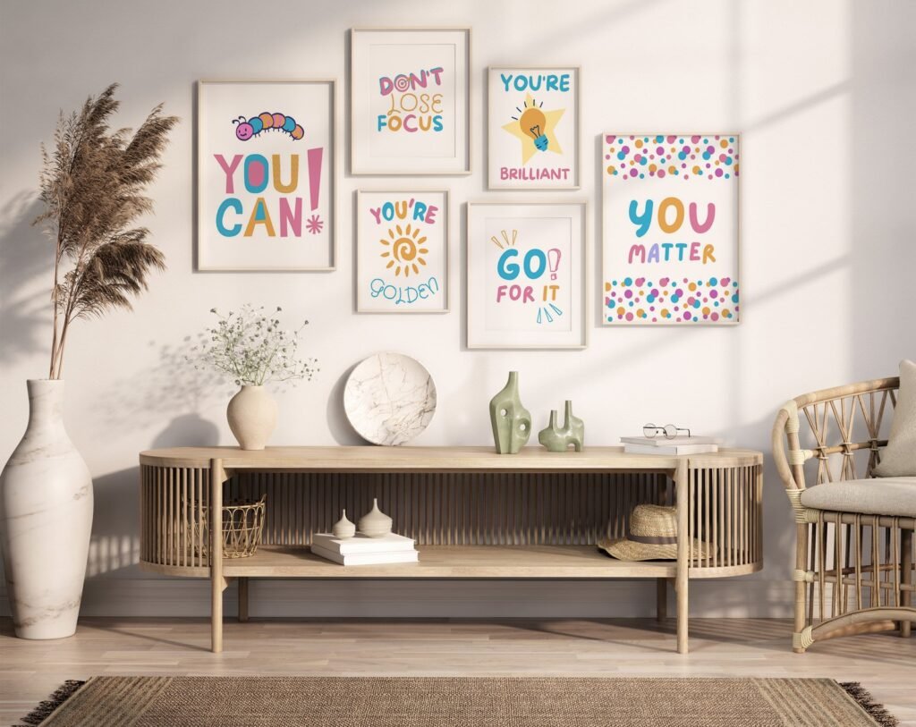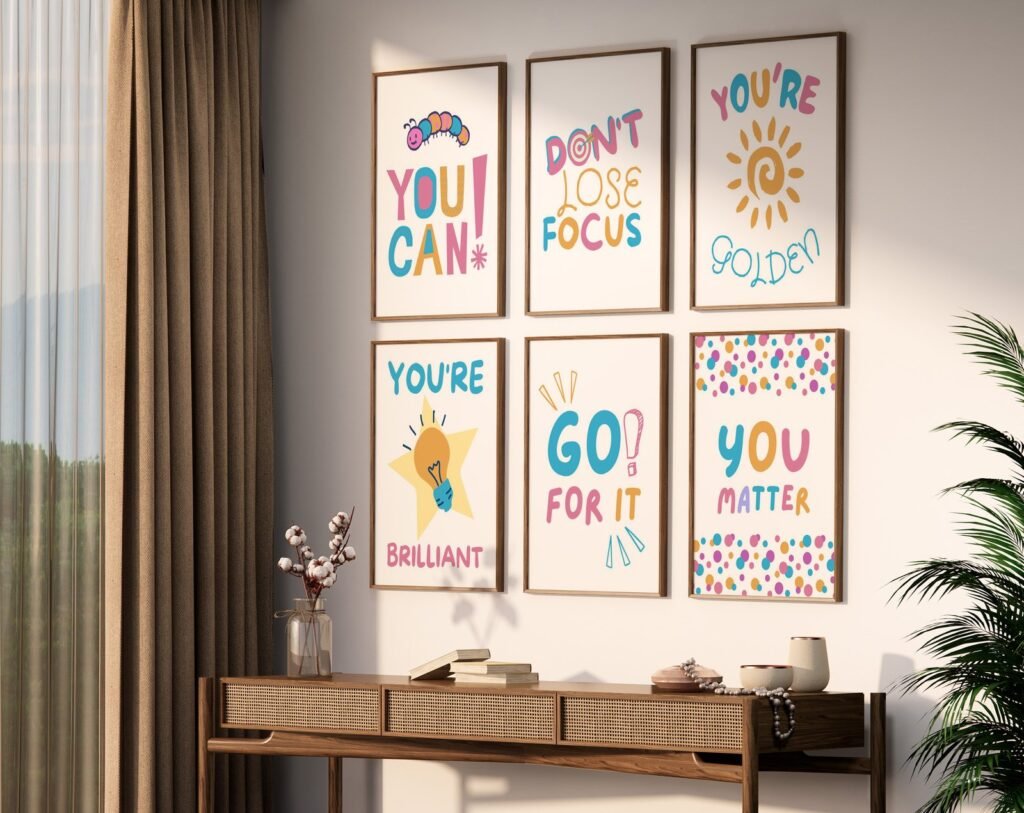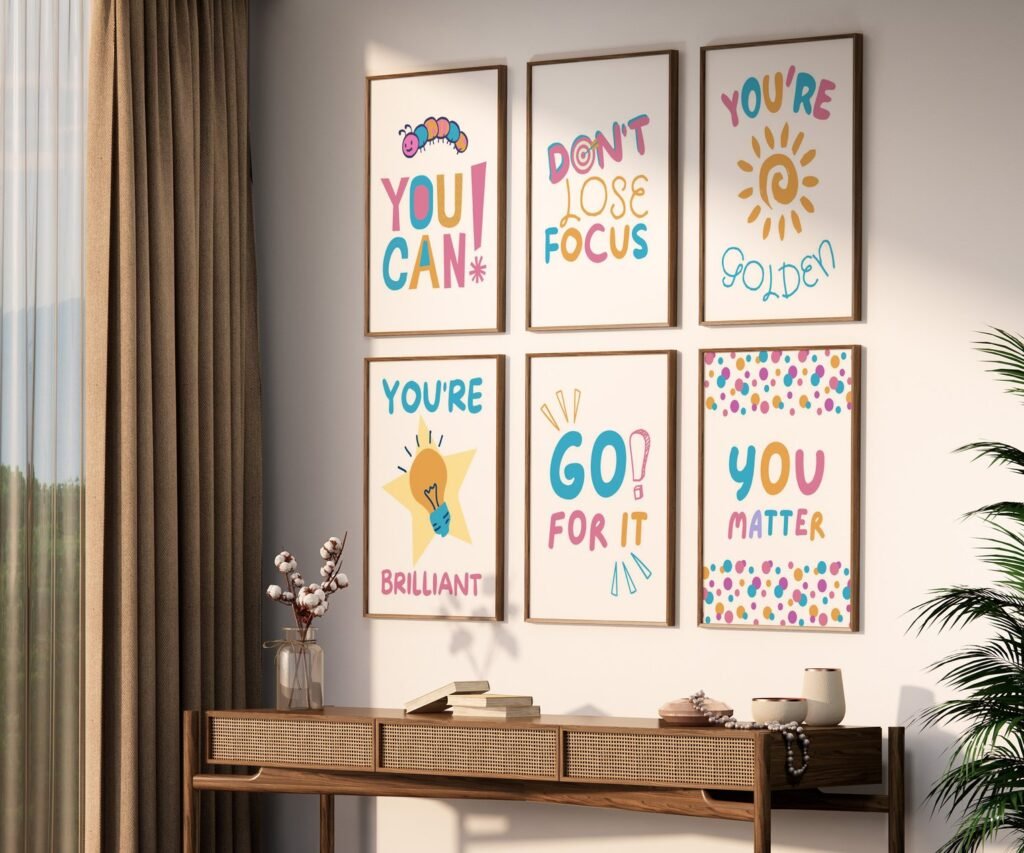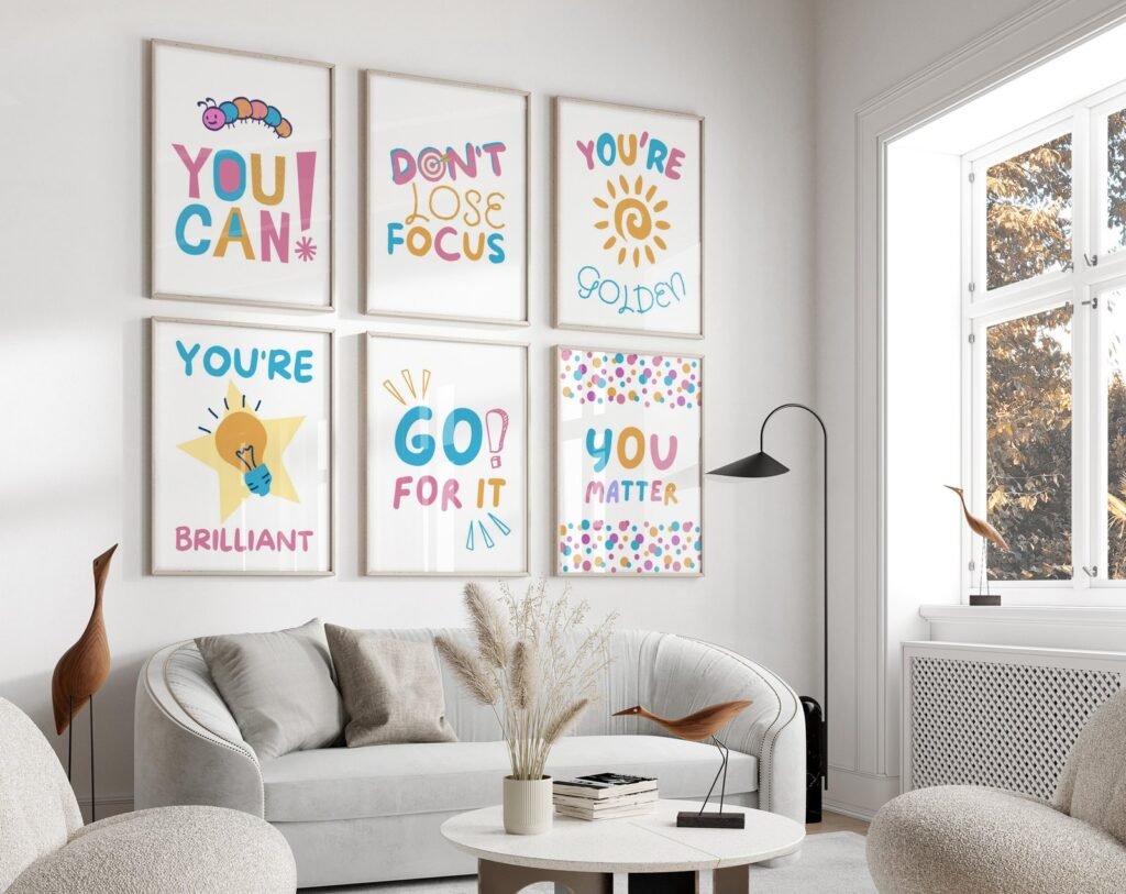 Our You Can, kids Positive Affirmations, set of 6, soothing colors, and heartwarming quotes that are bound to bring joy and comfort to your baby’s room. Each print is thoughtfully crafted to add a touch of magic and wonder, making it an ideal gift for new parents or a special treat for your own bundle of joy.