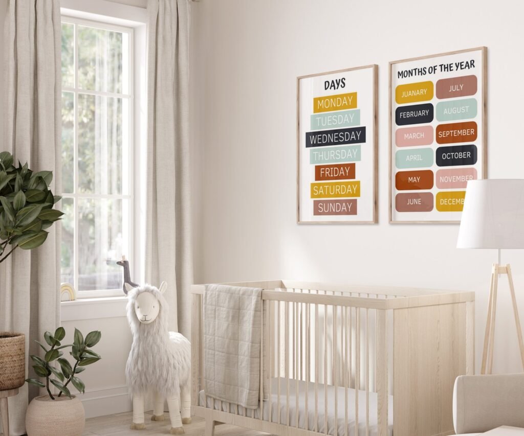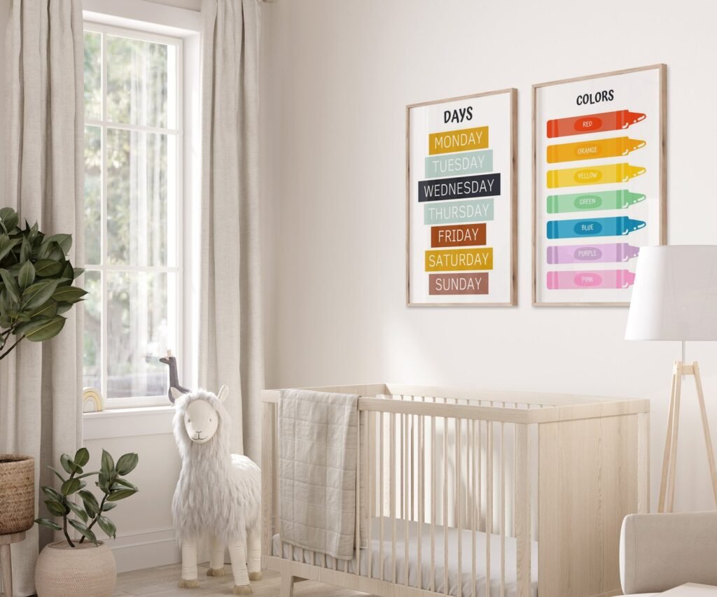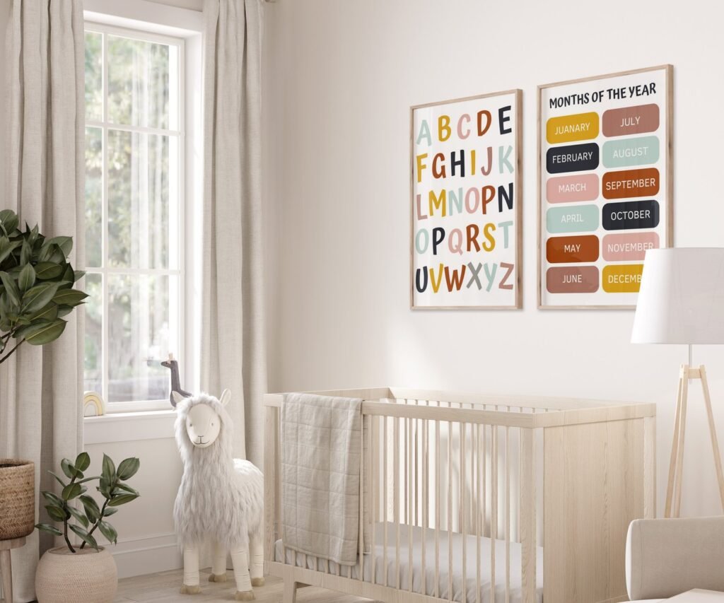 Kids Wall Art, Children’s Wall Art, Nursery set of 2 Prints, Educational Wall Art, Alphabet, Numbers, Colours, Shapes , Classroom print