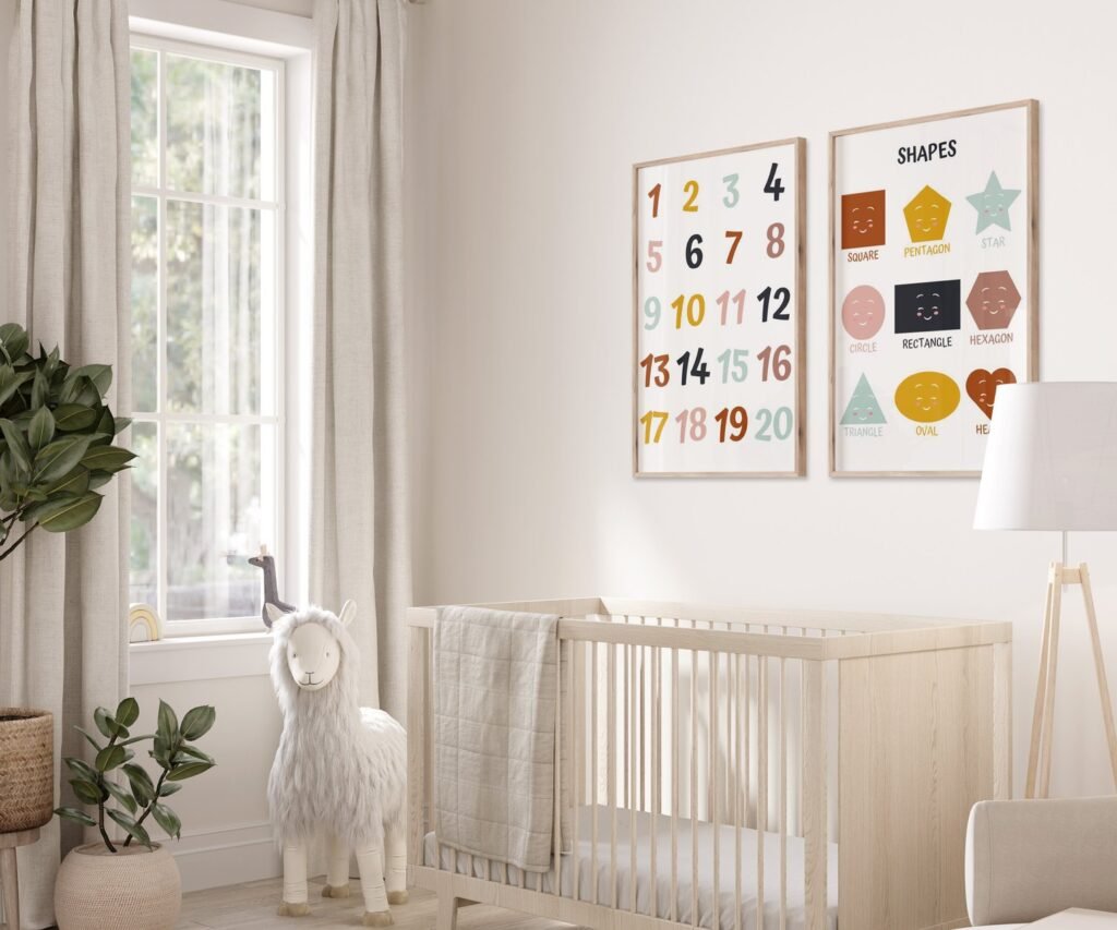 Kids Wall Art, Children’s Wall Art, Nursery set of 2 Prints, Educational Wall Art, Alphabet, Numbers, Colours, Shapes , Classroom print