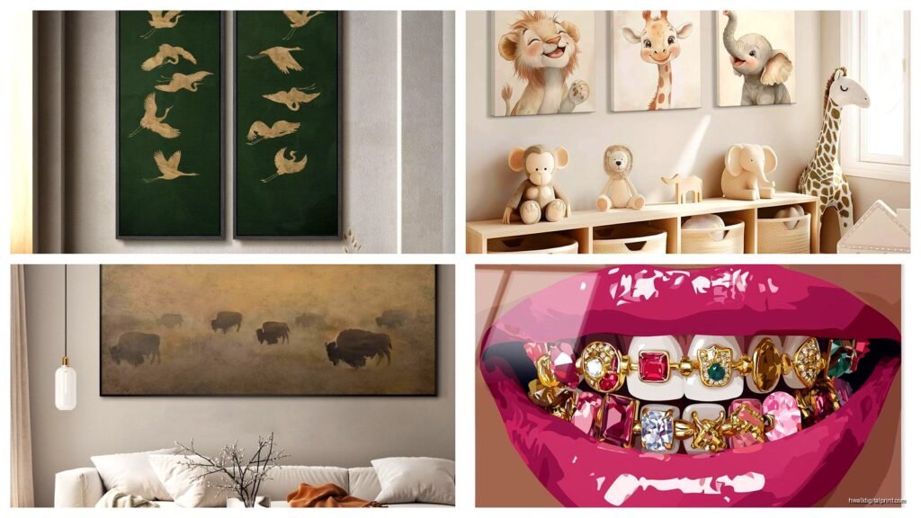 Size is where everyone messes up. That “40×30 canvas looks perfect” until it shows up and it’s either way too small for your wall or completely overwhelming. I tell people to tape out the dimensions on your wall with painter’s tape before ordering. Sounds extra but I promise you’ll save yourself returns.